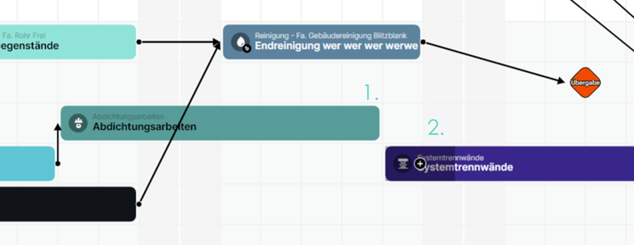 - Der neue Prozess hat standartmäßig den Namen des Gewerks, möchten Sie den Prozess jedoch individuell benennen, ist dies via Doppelklick auf den Prozess oder Meilenstein möglich.