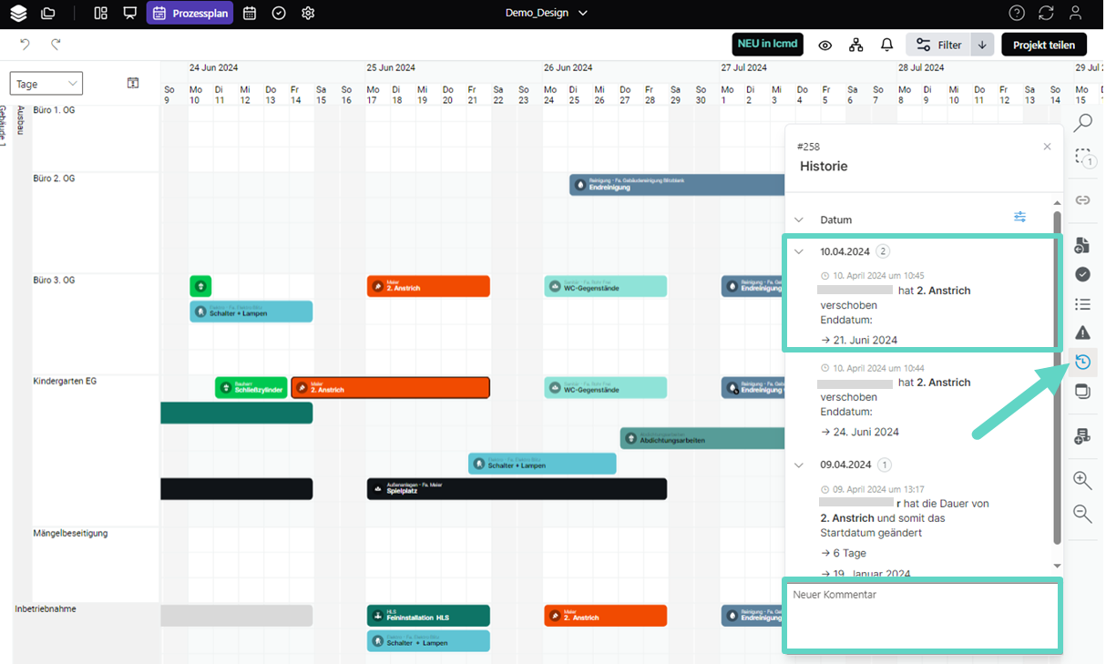 Für eine leichtere Kommunikation untereinander auf der Baustelle können Sie Prozessen Kommentare hinzufügen.