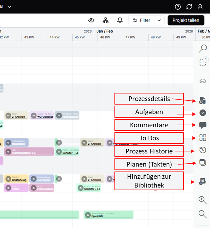 Zudem lässt sich hier der Link zum ausgewählten Prozess kopieren, um diesen anderen Projektbeteiligten schnell und einfach senden zu können.