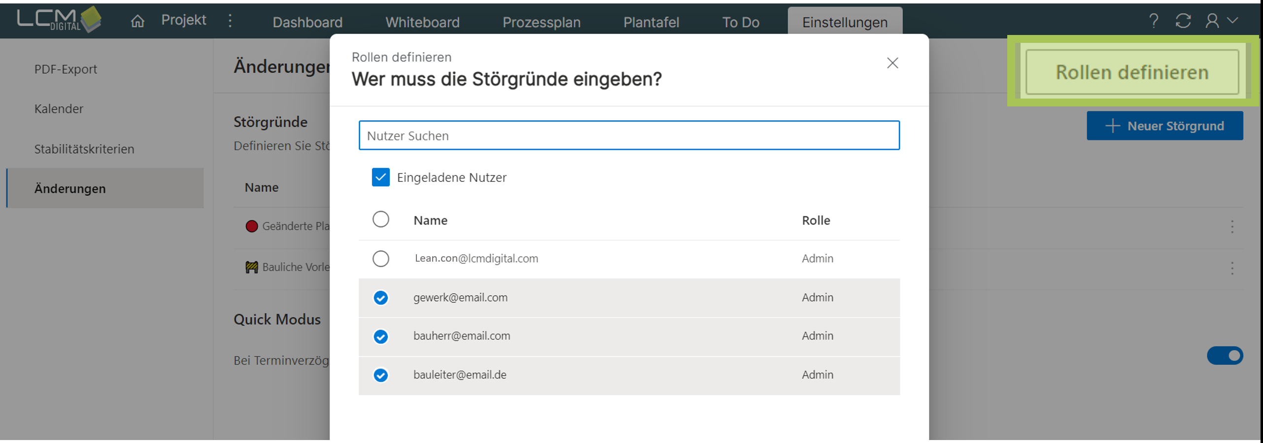 17.07.2023 - Personenbezogene Verpflichtung zur Angabe von Störgründen uvm (Release Notes 2.24.0) 17. Juli 2023 06:41 Aktualisiert Wichtige Verbesserungen Historie automatischer Pop-Up zur Angabe von Störgründen bei Verspätungen De-/Re-Aktivierung des Pop-ups (Quick Modus in Einstellungen-Änderungen) Historieneinträge von Verzögerungen beziehen sich auf das Enddatum Störgründe können für das Löschen von Prozessen angegeben werden Ausschneiden und Einfügen, Prozessumbenennung, Gewerkeänderung für Mehrfachprozessauswahl implementiert Störgründe Personenbezogene Verpflichtung zur Angabe von Störgründen Nutzer für verpflichtende Angabe von Störgründen können nur durch Admin geändert werden ToDo Liste Beim Erstellen von Aktionspunkten wird das heutige Datum als Zieldatum gesetzt, wenn nicht anders vom Nutzer definiert Import/Export Kundenspezifischer Import von Meilensteinen aus Desite Wichtige Fehlerbehebungen Historie Historien-Anzeige für Mehrfachprozess-Änderungen korrigiert Filteranzeige für Mehrfachprozess-Änderungen korrigiert Verbesserungen bei Übersetzungen der Störgründe in englisch Filtern nach Prozessdatum in Historie verbessert Fehlerkorrektur aufgrund importierter jährlicher Feiertage Whiteboard Zusätzliche Lücke beim Übertrag von Prozessketten vom Whiteboard in den Prozessplan beseitigt Plantafel Tageslinie in der Plantafel für die USA Zeitzone korrigiert Verwandte Beiträge Störgründe & Historie Rollen und Aufgabenmanagement