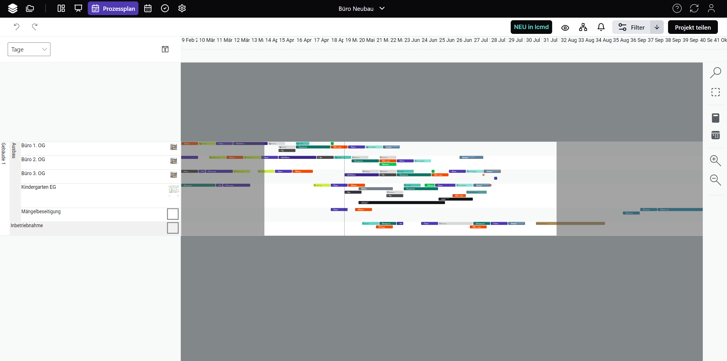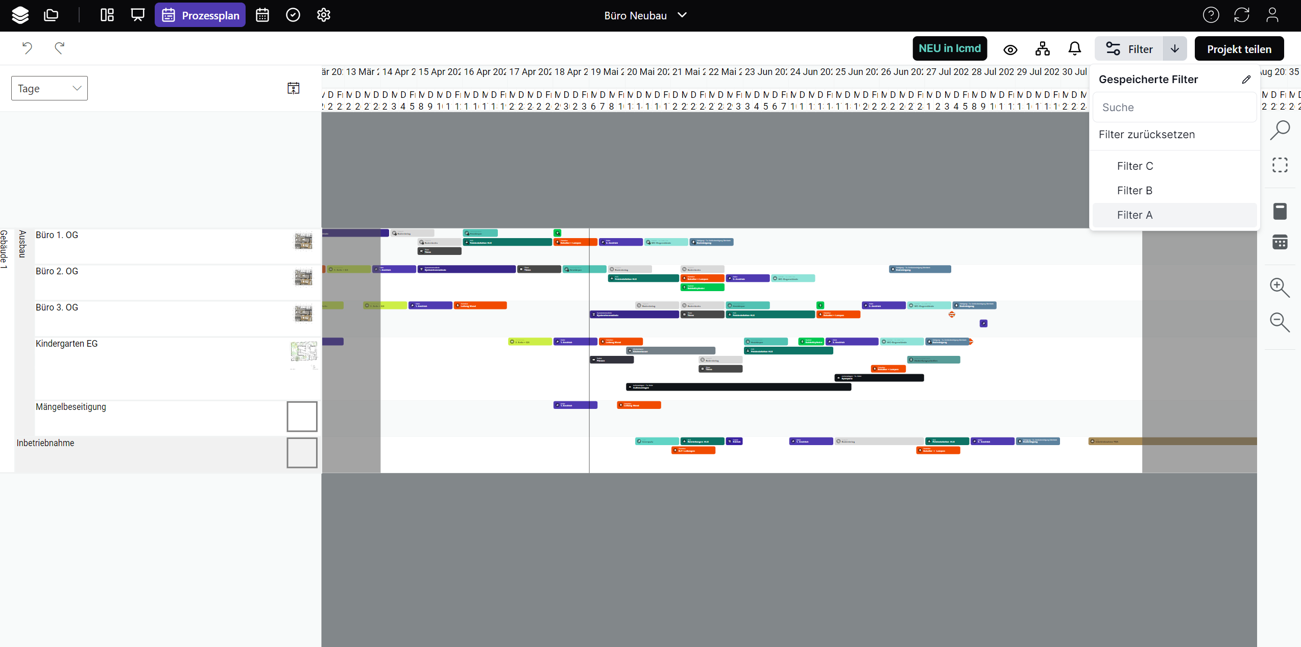 Filtering in the process plan can help you to maintain a clear overview of your project.