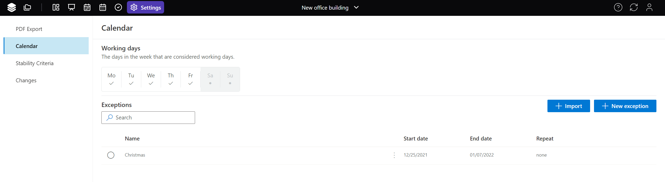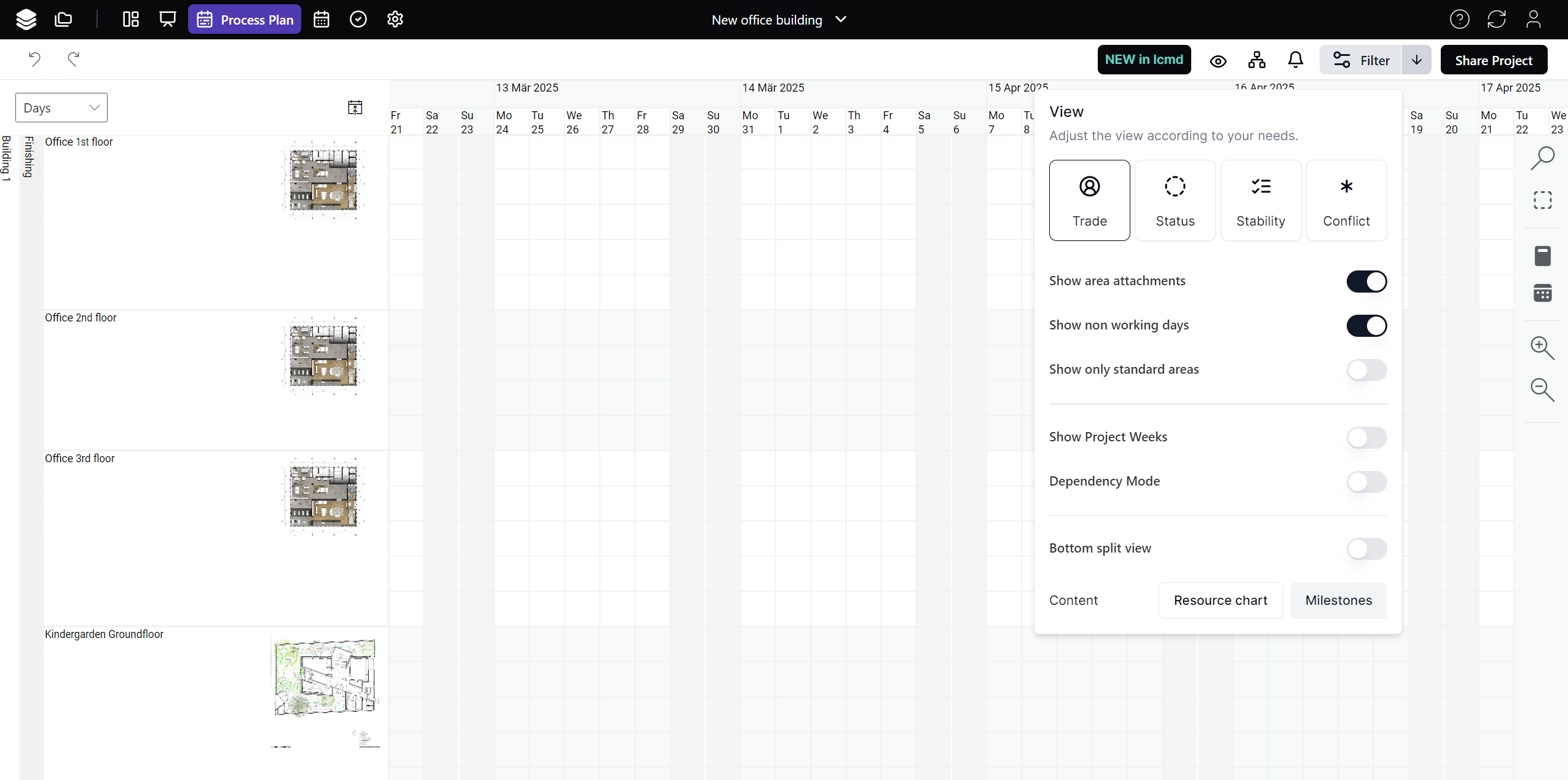 Determine calendar for project and show in process plan