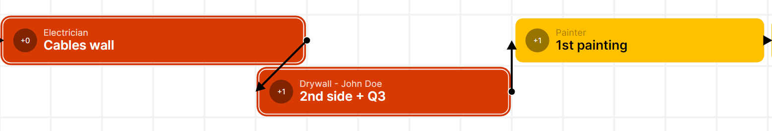 - The number in the circle on each process in the conflict view shows how many days the original dependency has been exceeded and therefore by how many days individual processes would have to be postponed in order to restore the original dependency and thus resolve the conflict.
