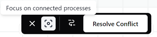 - In conflict mode, all unaffected processes are displayed transparently. If required, select the focus view for an isolated display of the conflict.